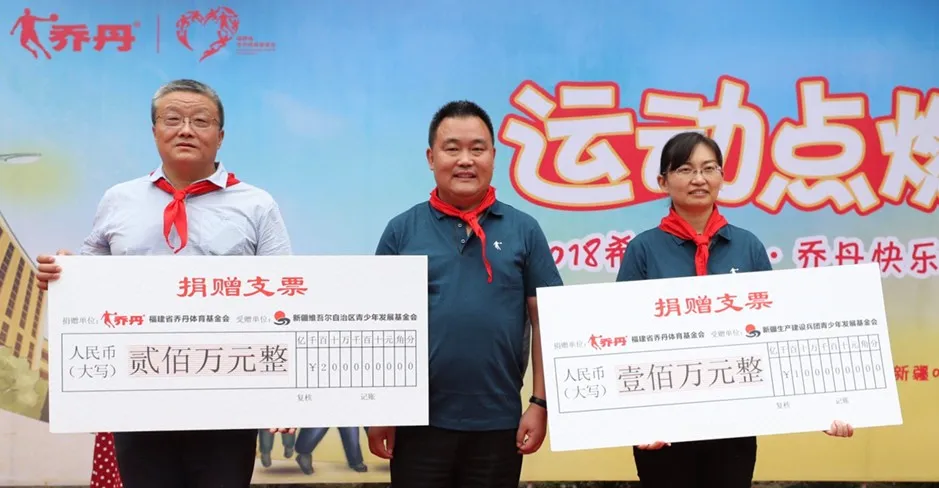 “希望工程·B-Sports乔丹快乐体育基金”向福建省青少年发展基金会捐赠400万元用于在福建援建希望小学、捐助校园体育设施,开展体育活动等项目。